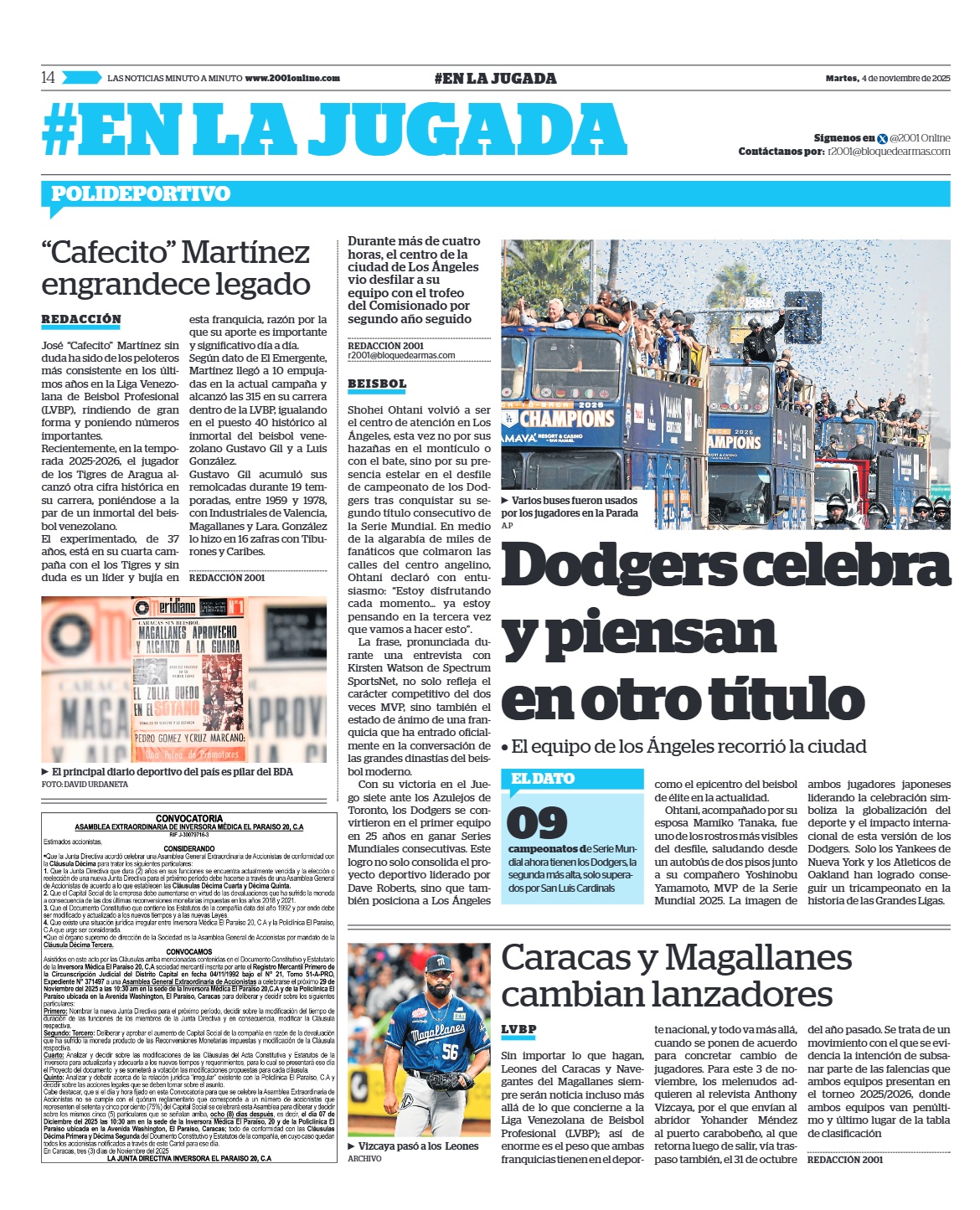 Convocatoria a Asamblea General Extraordinaria de Accionistas de Inversora Médica El Paraíso 20, C.A. Se reproduce el texto oficial y la evidencia de publicación en prensa.